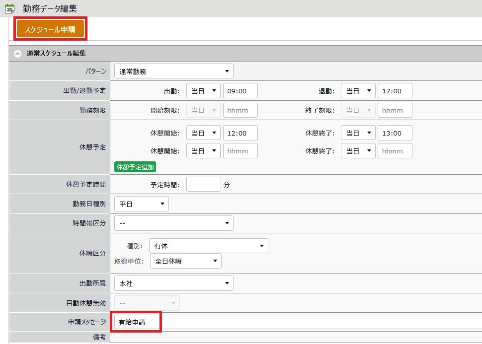 申請メッセージを入力して、[スケジュール申請]をクリックします。